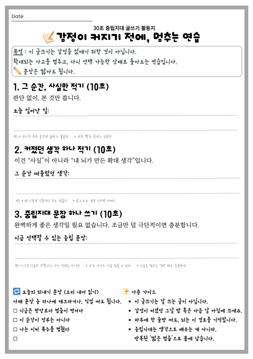 ※ 오늘 배운 것의 실천을 돕는 30초 글쓰기 (감정이 커지기 전에, 멈추는 연습)