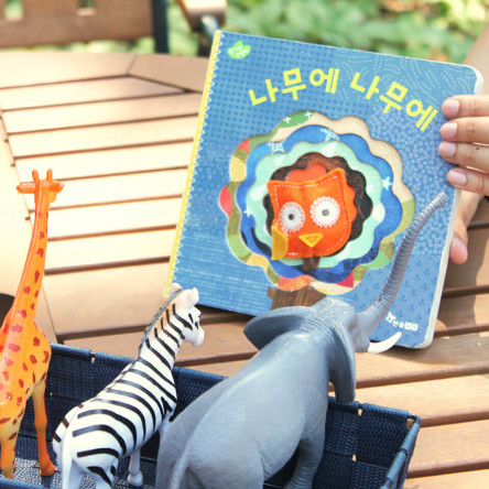그림책 [나무에 나무에]는 부엉이 손가락 인형이 아기의 시선을 사로잡으며, 나무모양의 크고 작은 구멍이 아기가 책을 탐색하고자 하는 호기심을 강하게 유발한답니다. 나무에 나무에 책과 함께하는 그림책 놀이를 만나보세요!