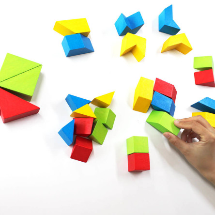 [차이의 수학 놀이 - 입체 칠교]는 아이가 직접 조작하며 다양한 놀이를 할 수 있도록 이끕니다. 입체 칠교놀이를 통해 도형과 가까워질 수 있도록 도와주세요.