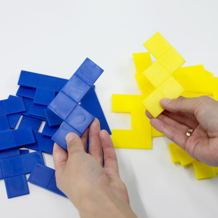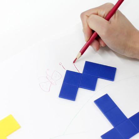 정사각형 다섯 개가 각기 다르게 이어진 형태로 구성된 펜토미노 조각은 도형의 기본 개념 탐구를 도와주는 과학적인 놀이 퍼즐입니다.