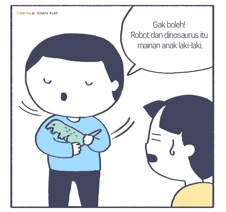 Jenis kelamin yang ditentukan saat lahir sering kali memaksa kita untuk memilih apa yang kita sukai dan harus kita lakukan, terbatas pada stereotip peran laki-laki dan perempuan. Biarkan si kecil mendapatkan berbagai pengalaman sehingga ia dapat memilih hal yang disukainya sesuai dengan karakteristik masing-masing, tanpa dibatasi oleh jenis kelaminnya.