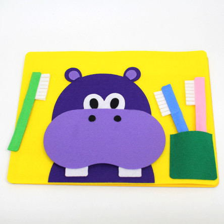 부드러운 펠트 재질로 구성된 하마에게 양치질을 해주세요. 양치의 즐거움과 필요성을 자연스럽게 놀이를 통해 배울 수 있습니다.