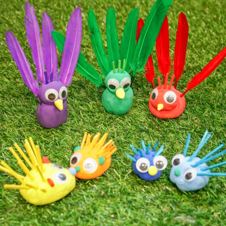 동물은 아이에게 호기심의 대상이며 놀이를 더욱 즐겁게 만들어주는 놀이 친구지요. "무지개 동물 만들기 놀이"는 점토 클레이 깃털 성냥 스틱 눈알 등 다양한 재료로 알록달록 예쁜 무지개 동물 친구들을 만들 수 있는 놀이 키트랍니다.