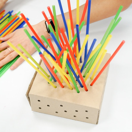 종이 상자에 있는 구멍에 꼭 맞게 재료를 쏙쏙 끼우며 재미나게 놀이할 수 있도록 구성되었습니다.