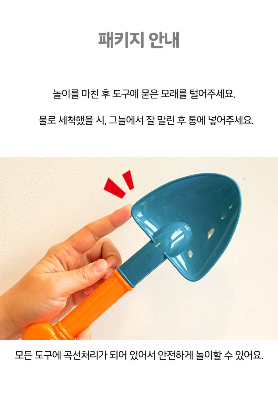 | 삽종류(모래체, 삽 2종) 3개 / 약 12.5cm X 11cm 혼합 플라스틱 외 / 제조국: 중국, 수입자: (주)오로라 |