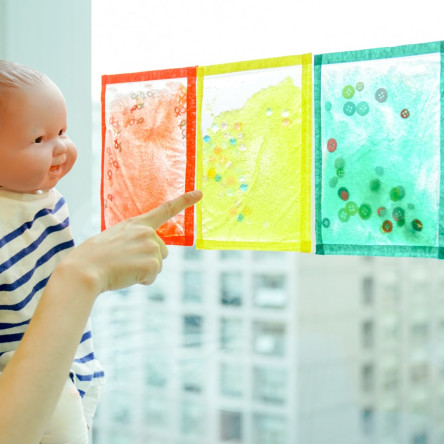 무지개 빛깔이 아기의 시각과 촉각을 사로잡아요! '아기 수정토 어항 놀이'