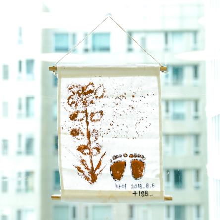 '황토 오감 놀이 세트'는 아이가 다양한 놀이 상황을 경험하며 상상력을 키울 수 있는 놀이 재료로 구성하였답니다. 자연 재료인 생 황토로 아이와 재미있게 놀이하실 수 있어요! 우리 아기 귀여운 손바닥과 발바닥을 족자에 찍고 날짜를 남겨 보세요 :) 오래 기억될 소중한 추억이 된답니다!
