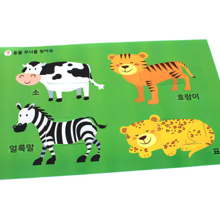동물 그림 카드를 보고 알맞은 무늬를 찾아 스티커 붙이기 놀이를 해보세요. 눈과 손의 협응력을 길러주고, 다양한 동물을 보며 아이의 감각 발달에 도움을 줍니다.