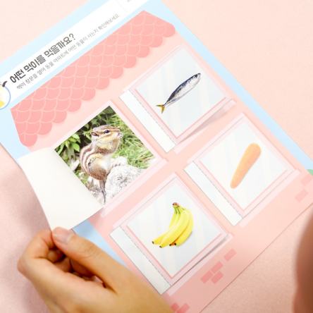 > A3 사이즈 등 활동지 크기에 맞는 손코팅지 등을 따로 구매하셔서 종이 활동지에 씌운 후 놀이해 보세요. 오래 오래 활용하실 수 있답니다.