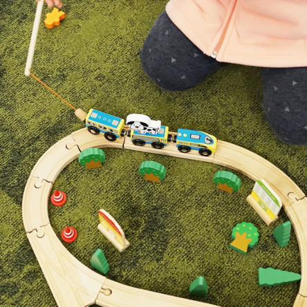 * 원목 기차로 놀이하며 대, 소근육 발달을 도와줘요.