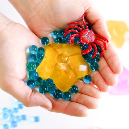 만지고, 잡고, 도구에 담고 쏟으며 다양한 놀이에 활용할 수 있는 머스트 해브 놀이템, '작은 별 불가사리 수정토'를 선물해 보세요!