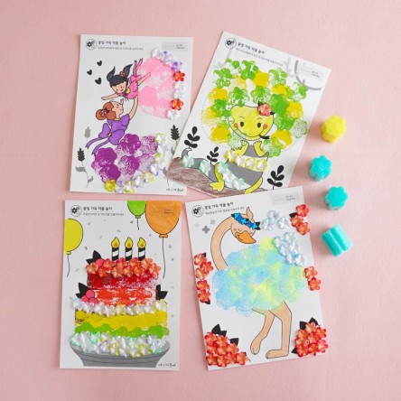 소근육 놀이도 하고, 물감 찍기 놀이, 던지는 놀이, 역할 놀이, 물에 뜬 꽃송이폼 건져보기 놀이 등 여러 가지 놀이로 활용하실 수 있답니다.