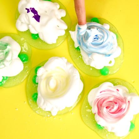 2. 3가지 향과 색깔의 스노우버디로 케이크를 만들며 상상력을 길러요.