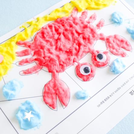 3. 스펀지 위에 스노우 버디를 바르고 토핑을 얹으며 소근육 조절력을 길러요.