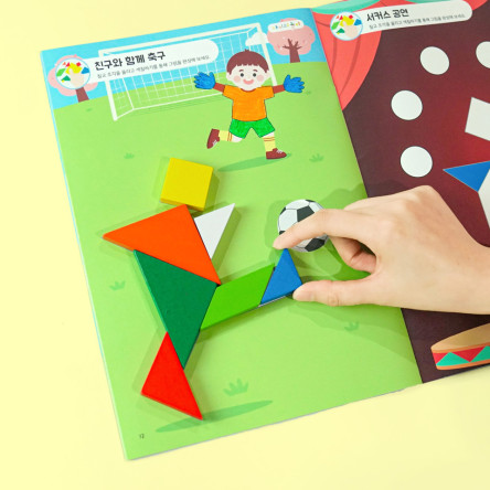 칠교 조각을 맞춰 보며 아이가 공간 지각력과 문제 해결력을 기를 수 있도록 도와 주세요!