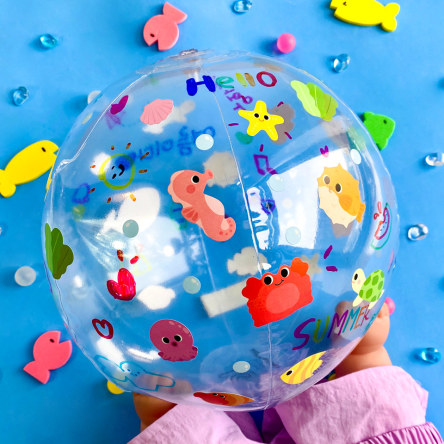 [구성품] 비치볼 2개 (랜덤 색상) + 바다 생물 꾸미기 스티커 2장 (1장 기준 23조각)