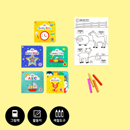 | 옵션 2. | Animals (12쪽, 26 x 26cm) 1권 (표지 포함 12쪽) / 가로 26cm x 세로 26cm / 컬러 혼합 / 종이(보드북) |