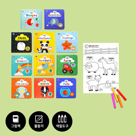 | 옵션 1. | Colours  (12쪽, 18 x 18cm) 1권  (표지 포함 12쪽) / 가로 18cm x 세로 18cm / 컬러 혼합 / 종이(보드북)   |