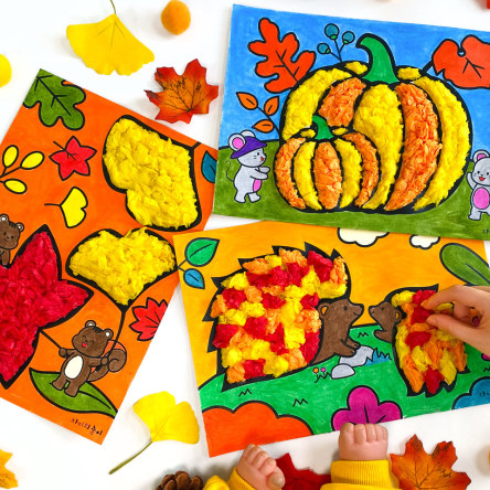 색칠하고 습자지를 붙이면 어느새 가을이 한걸음 더 다가와 있을 거예요~!