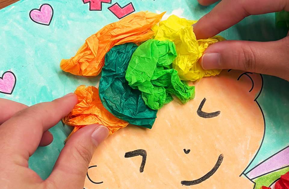 *활동지 3장 (8절) + 습자지 색깔별 6장 (연두/초록/노랑/빨강/주황 각 6장)