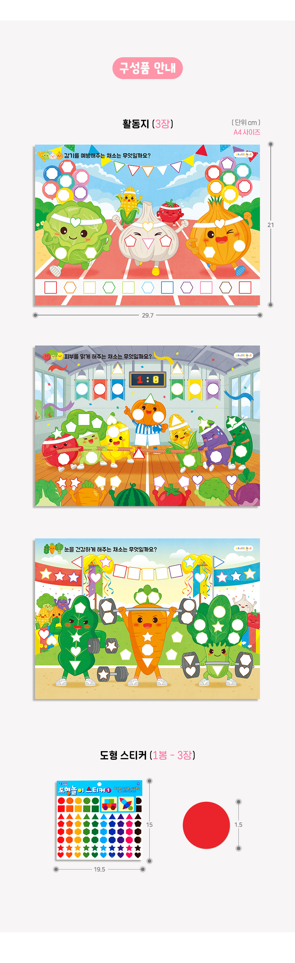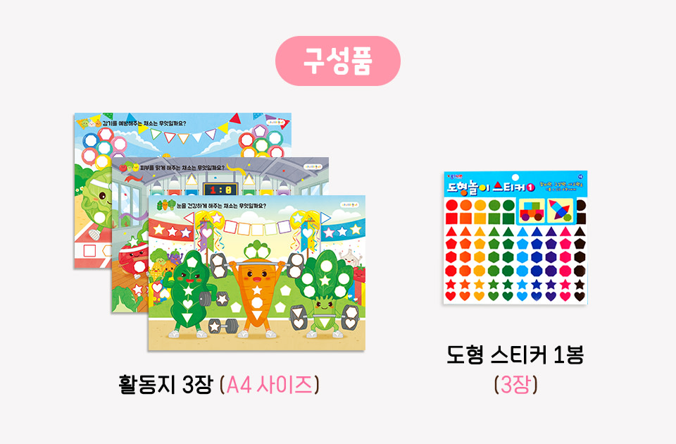 | 구성품 | 활동지 3장 - 29.7cm X 21cm (A4 사이즈) / 컬러 / 단면 / 종이 |