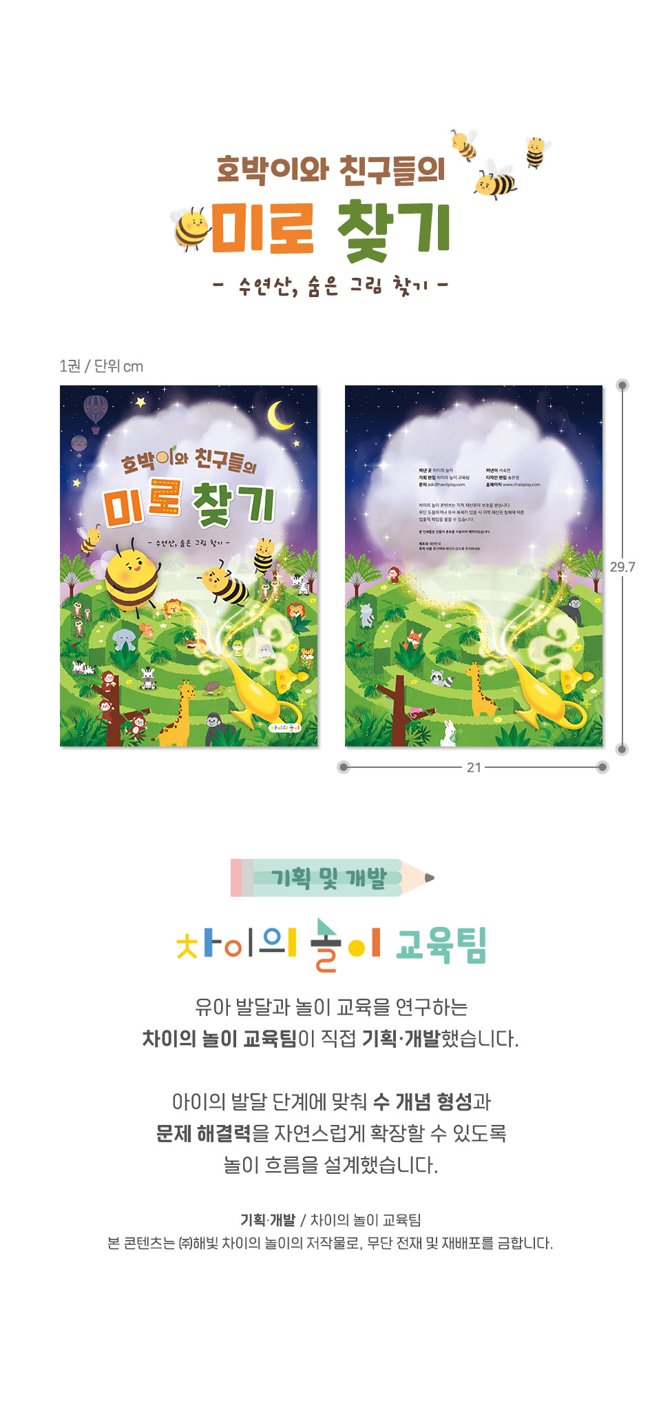 | 구성품 | 호박이와 친구들의 미로 찾기 – 수 연산, 숨은 그림 찾기 1권 - 21cm X 29.7cm (A4 사이즈) / 컬러 / 종이 |