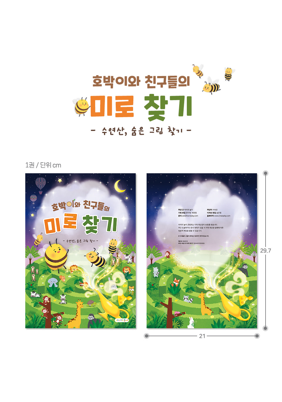 | 구성품 | 호박이와 친구들의 미로 찾기 – 수 연산, 숨은 그림 찾기 1권 - 21cm X 29.7cm (A4 사이즈) / 컬러 / 종이 |