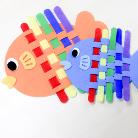 물고기의 몸에 무지개 색깔 부직포를 앞, 뒤로 끼워 보며 우리 아이의 사고력과 소근육이 발달해요.