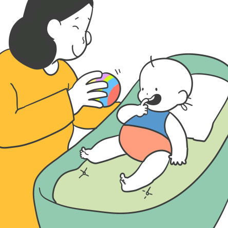 4. 아기가 손으로 모빌을 잡을 수 있는 정도라면 손으로 잡아볼 수 있도록 도와줍니다.