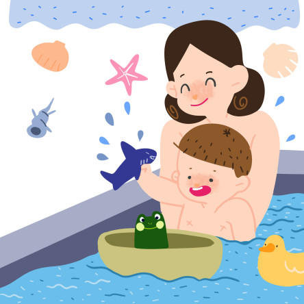 2. 몸을 닦고 옷을 입은 후 아이와 마주 보고 앉습니다.