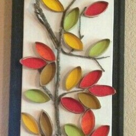 - 원형 나무 조각을 나뭇가지 주변에 붙여서 나무 모양을 만듭니다.