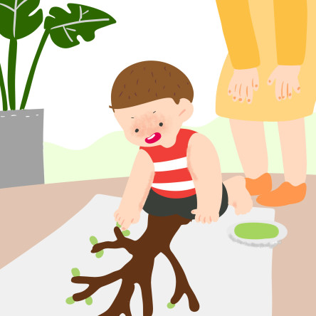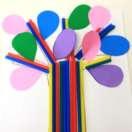 ![]() | 나뭇가지를 붙이고 동그란 나무 조각을 붙여서 나무를 만들어보자. |