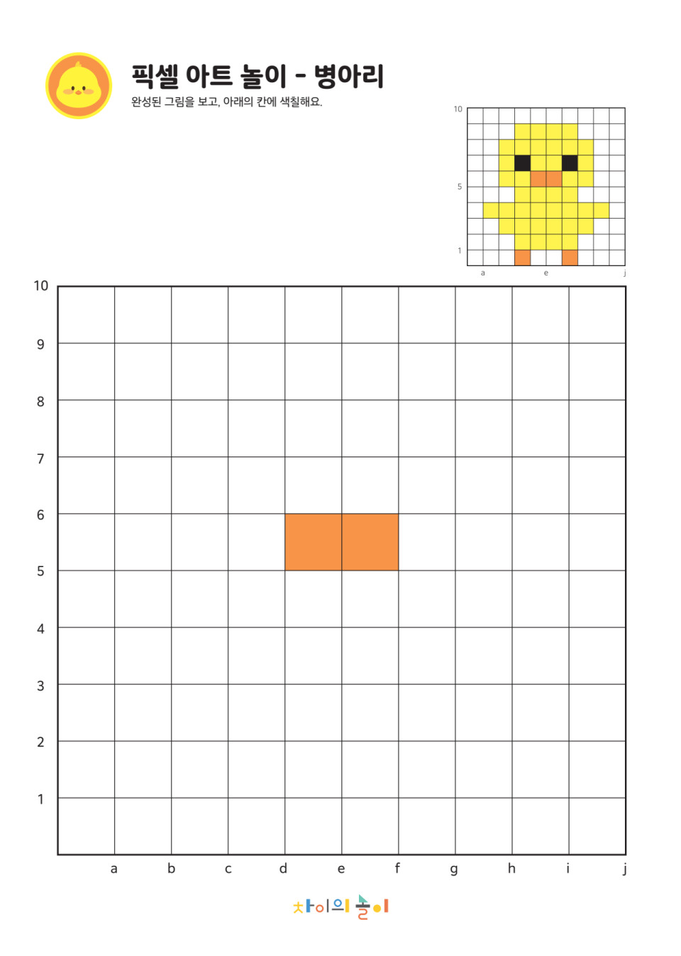 픽셀 아트 놀이 - 나의 동물 친구 '병아리와 펭귄' 차이의 놀이 무료 활동지