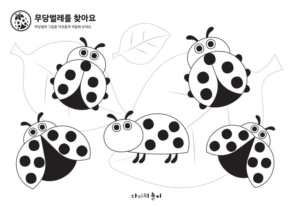![]() | (무당벌레 주변 그림을 손가락으로 가리키며) 무당벌레가 어디에 숨어 있을까? 차이가 찾아보자! |