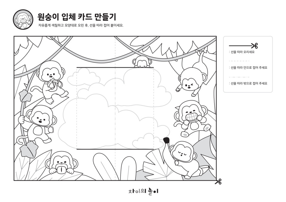 ![]() | (입체 카드를 완성한 후) 우아! 입체 카드가 완성됐네. 카드 속에 숨은 바나나를 찾아 볼까? |