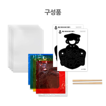 토퍼 2인용 세트 (졸업 토퍼 활동지 2장, 셀로판지 1봉, A4 손코팅지 4장, 나무젓가락 2개)만들기 방법놀이전, 준비해주세요