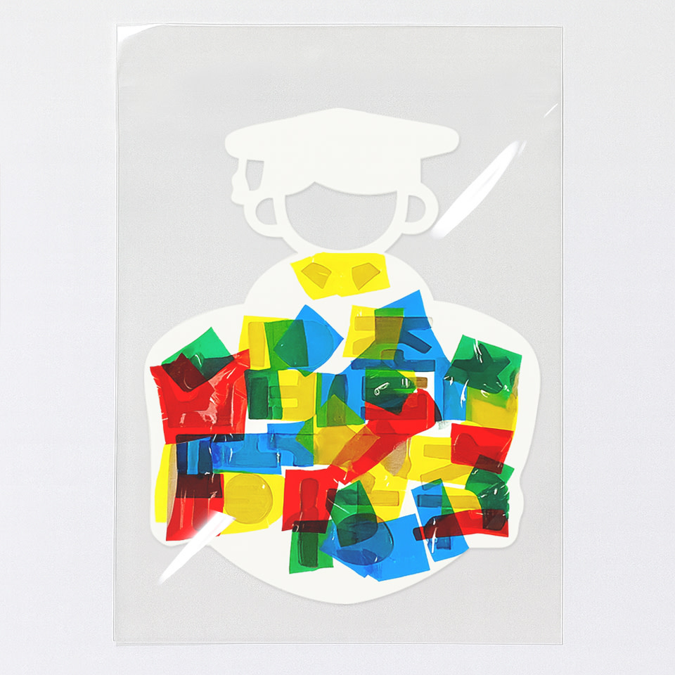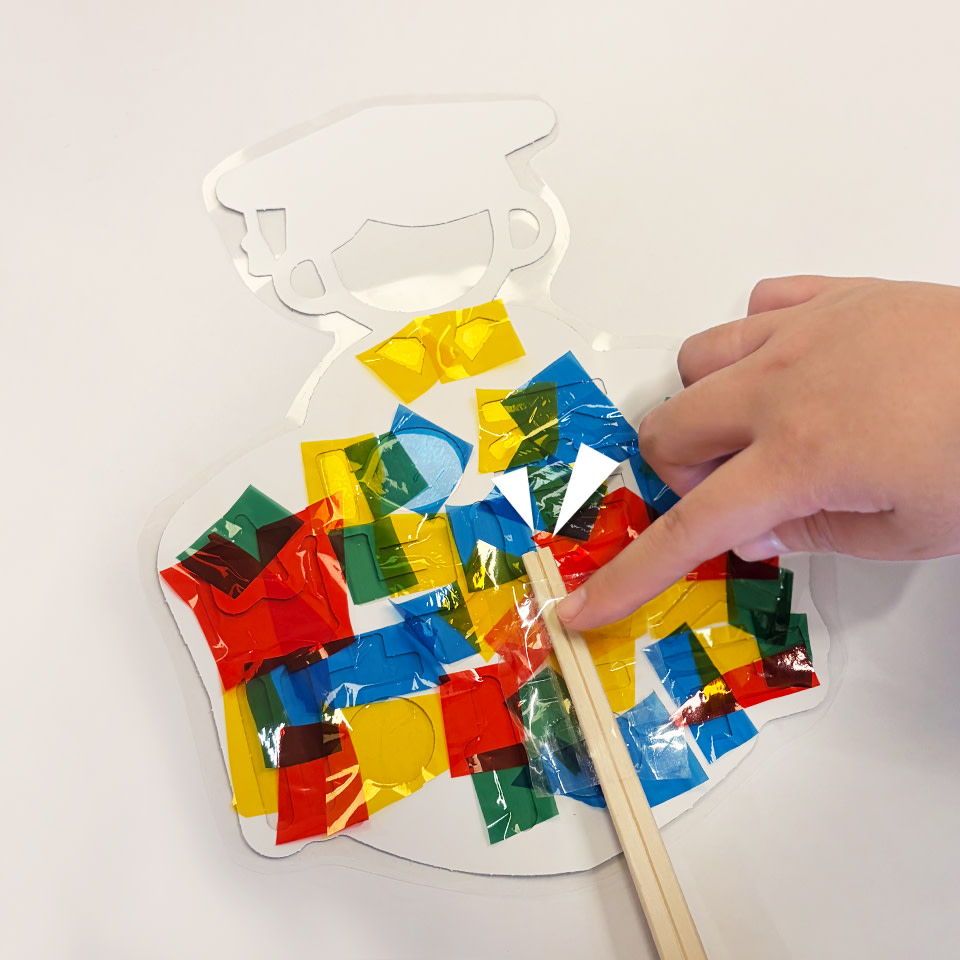 - 도안 안쪽에 셀로판지 조각을 자유롭게 붙입니다.