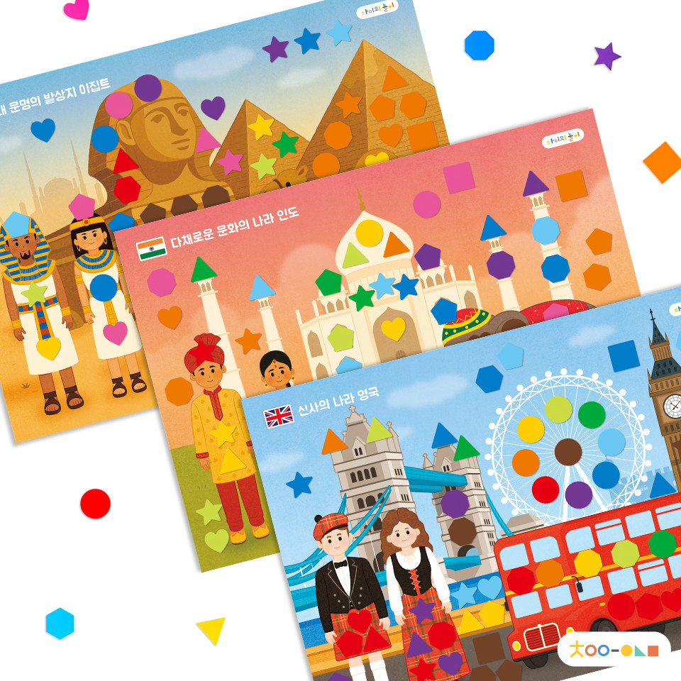 활동지 3장 + 도형 스티커 ① 1봉 (3장)놀이 방법