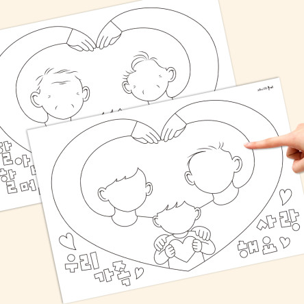 - 활동지 속 가족 얼굴을 자유롭게 색칠하고, 표정을 그려줍니다.