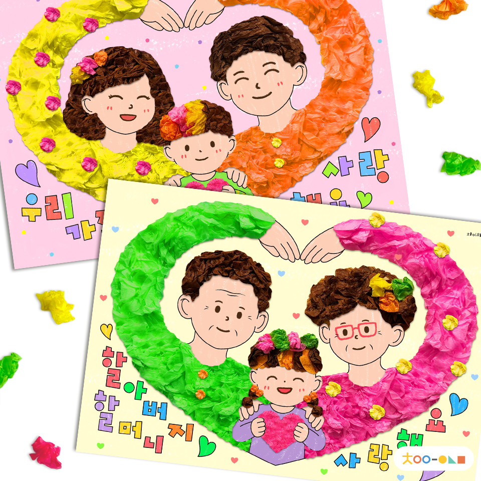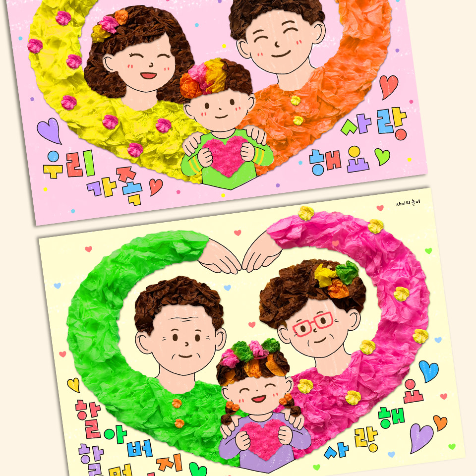 - 완성된 작품을 교실에 전시하고 친구들과 함께 감상하며, 가족에 대한 마음을 이야기 나눕니다.
