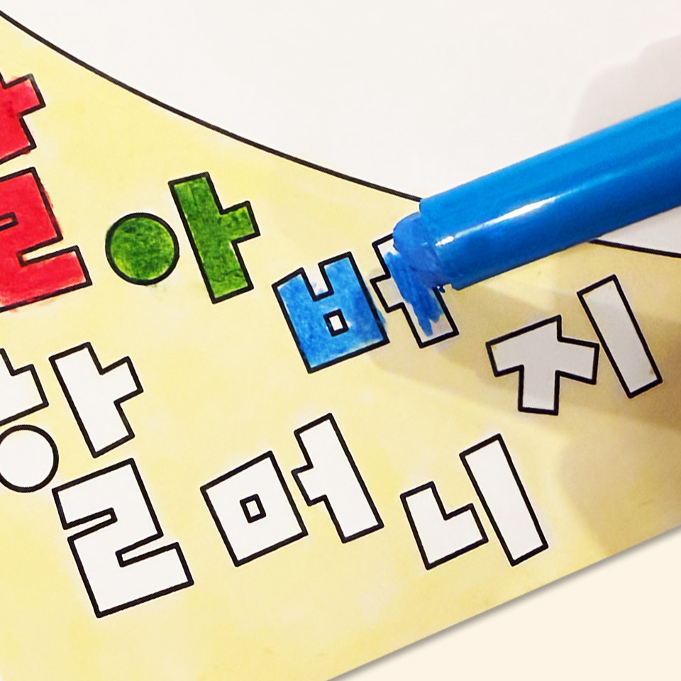 ![]() | (색칠 영역을 보며) 배경/ 글자/ 내 옷은 어떤 색으로 색칠해 볼까? |