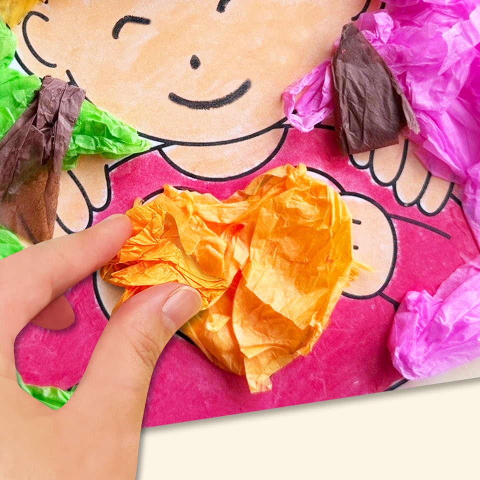 • 습자지를 찢고 붙이는 활동을 통해 눈–손 협응 능력과 소근육이 발달해요.