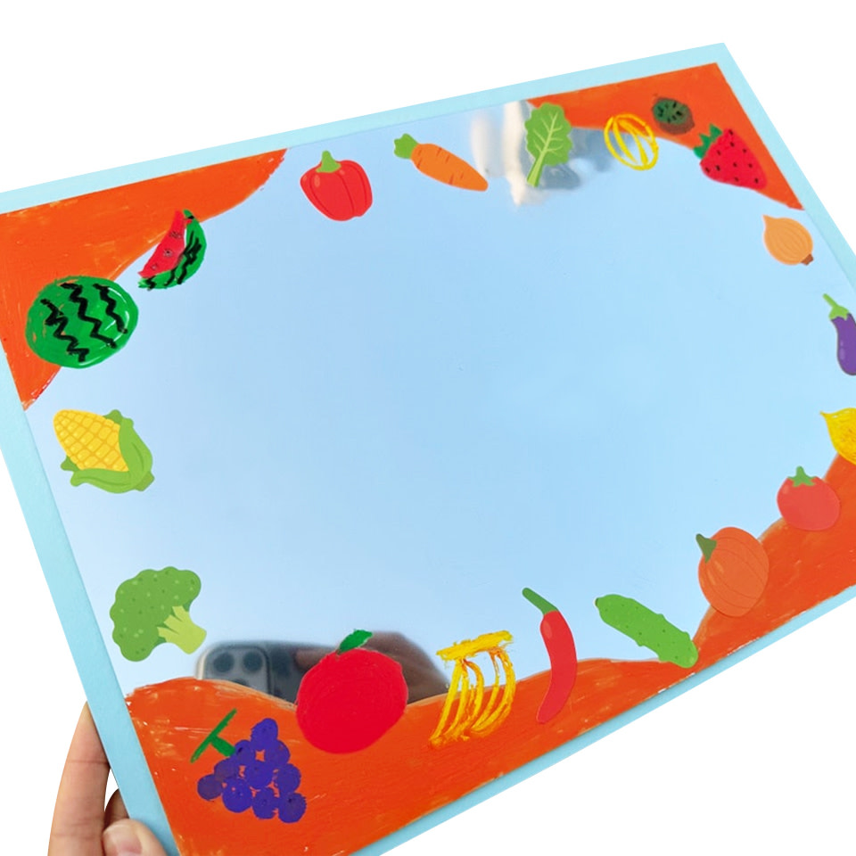 ![]() | 물감도 칠하고, 채소스티커도 붙여서 멋진 거울을 완성했구나! |
