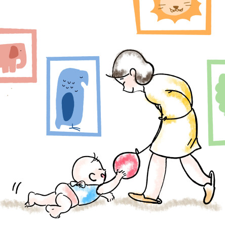 ![]() | (아기에게 양말을 굴려주며) 데굴데굴 양말 공이 굴러가네. |