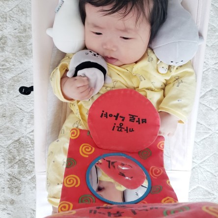 ![]() | (아기에게 모자를 보여주며) 차이야 여기 모자가 있네. 우리 차이가 만져볼까? |