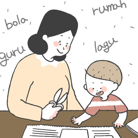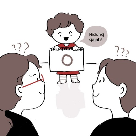 ![]() | Oh, betul ada Om bule, Om ini datang dari negara lain. Tante yang ini orang Indonesia dan mereka bertiga ini keluarga. Ada Ayah, Bunda dan anak mereka. |