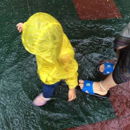 ![]() | (점토 위에 발바닥 도장을 찍으면) 발바닥 도장이 콩! 하고 생겼네 |