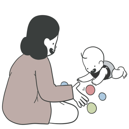 ![]() | (움직이는 아기를 보며) 우리 차이가 어디로 갈까? 엄마도 따라가 봐야지 |