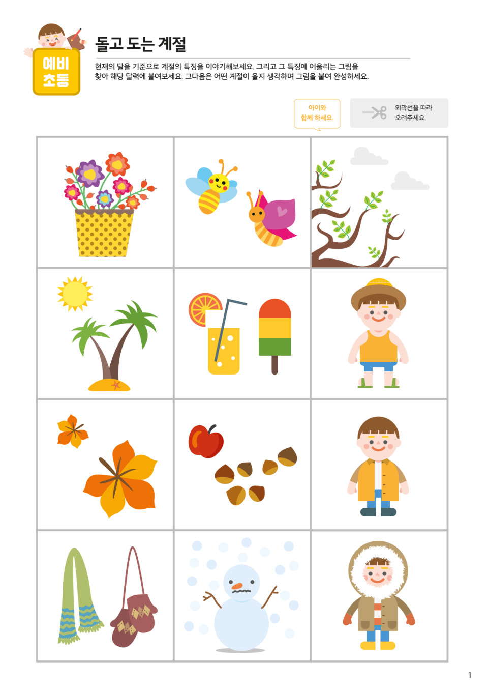 ![]() | 이렇게 계절별로 그림을 오렸으니 달력을 만들어 볼까? 우리 차이, 예전에도 엄마(아빠)하고 달력을 만든적이 있었지? 기억하니? |