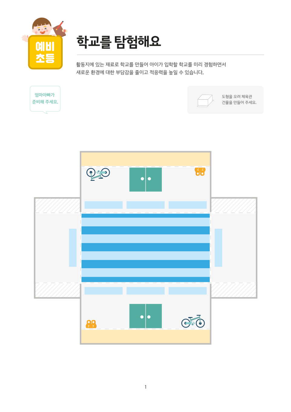1. 아이와 함께 학교를 미리 구경해보자고 말하고 놀이 재료를 준비합니다.
